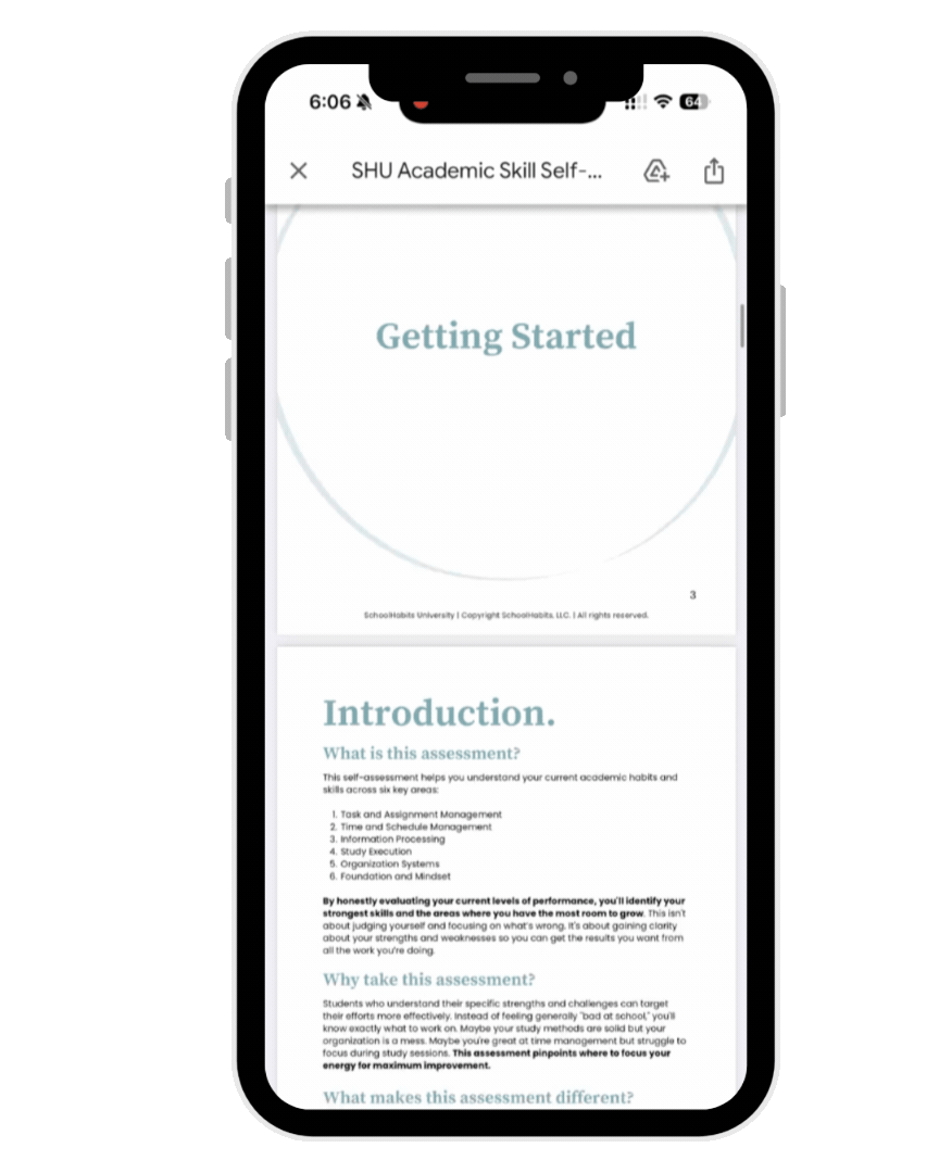 My proprietary Academic Skills Assessment is yours for free when you enroll in SchoolHabits University.